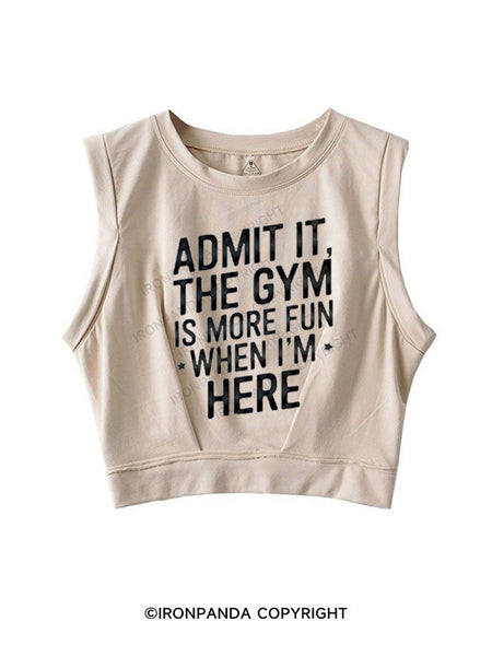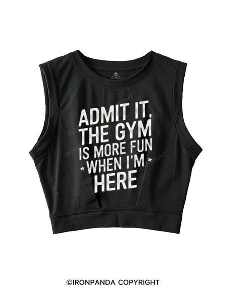 ADMIT IT, THE GYM IS MORE FUN WHEN I'M HERE SLEEVELESS CROP TOPS