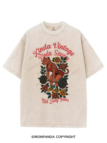 KINDA VINTAGE KINDA SAVAGE OLD LADY GAINS VINTAGE GYM SHIRT