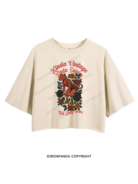 KINDA VINTAGE KINDA SAVAGE OLD LADY GAINS CROP TOPS