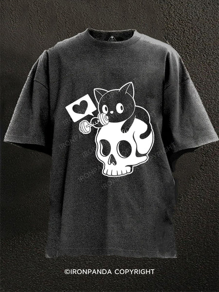 Weightlifting Cat Washed Gym Shirt
