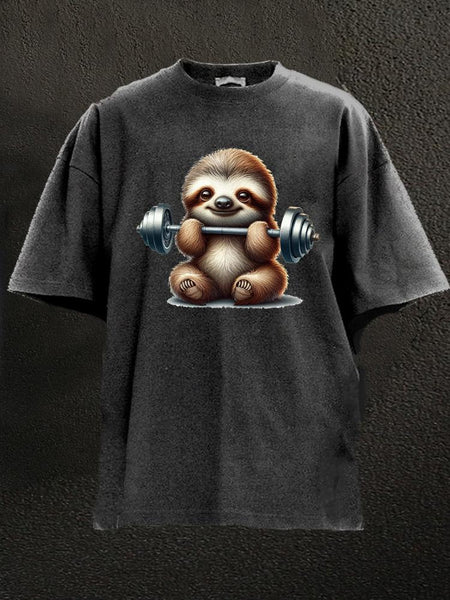 barbell weightlifting sloth Washed Gym Shirt