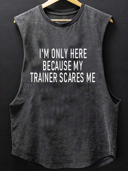 I'M ONLY HERE BECAUSE MY TRAINER SCARES ME SCOOP BOTTOM COTTON TANK
