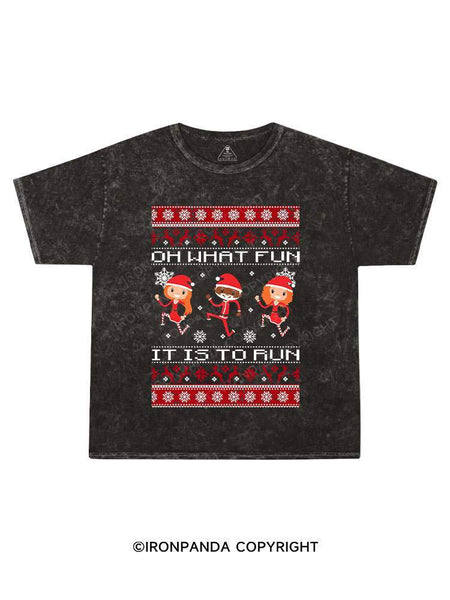 Christmas Running Kids Washed T-Shirt