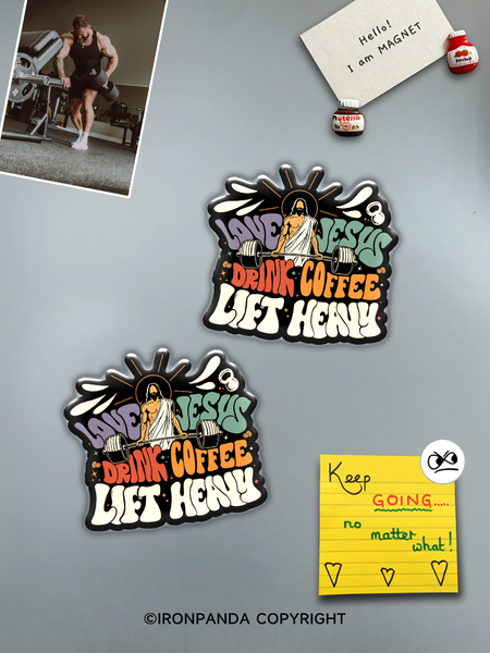 IronPanda LOVE JESUS DRINK COFFEE LIFT HEAVY Fridge Magnet