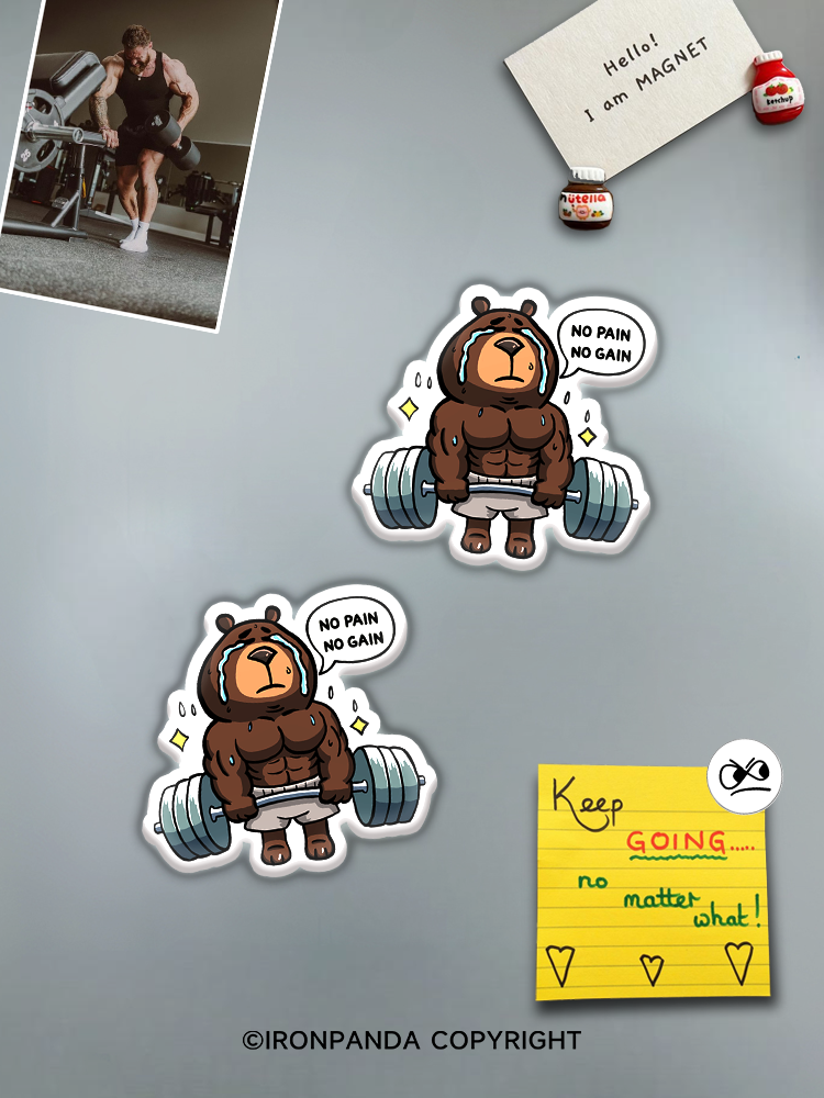 IronPanda no pain no gain weightlifting bear Fridge Magnet