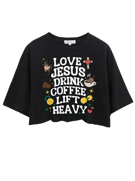 LOVE JESUS DRINK COFFEE LIFT HEAVY CROP TOPS