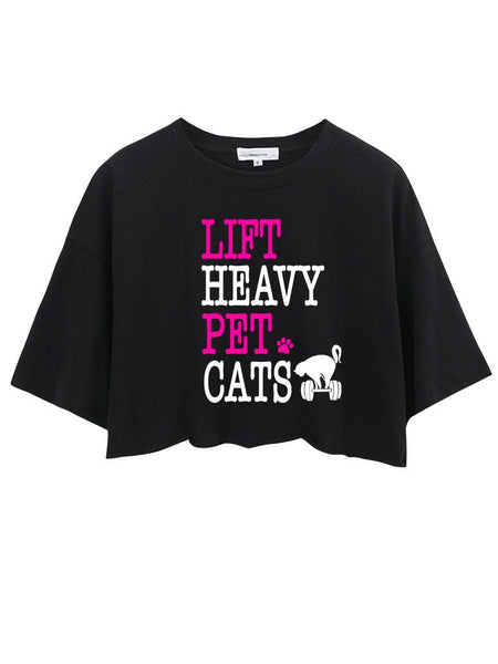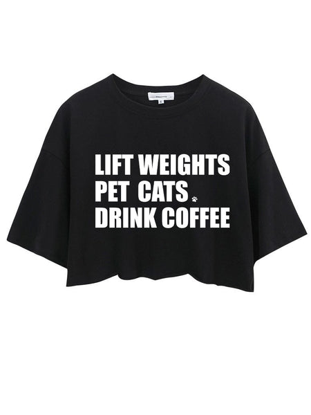 LIFT WEIGHTS PET CATS DRINK COFFEE CROP TOPS