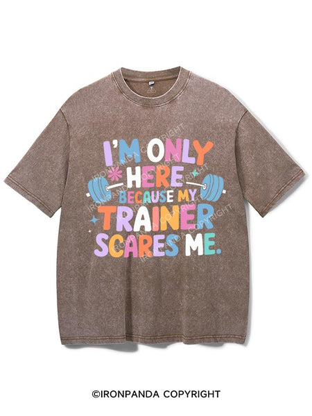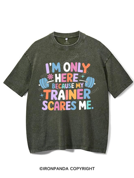 I'M ONLY HERE BECAUSE MY TRAINER SCARES ME VINTAGE GYM SHIRT