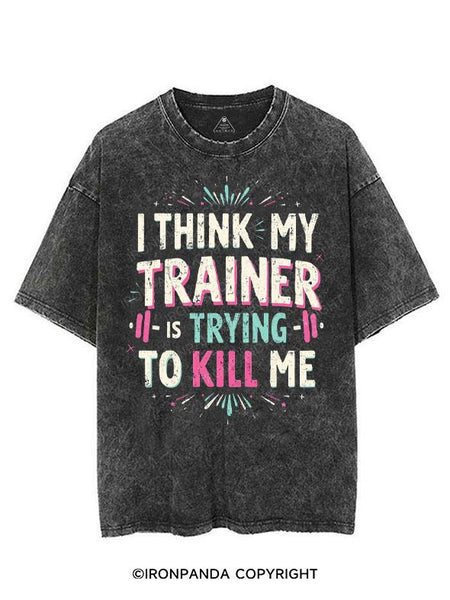 I THINK MY TRAINER IS TRYING TO KILL ME VINTAGE GYM SHIRT