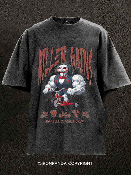 Kawaii Horror:barbell slasher crew Washed Gym Shirt