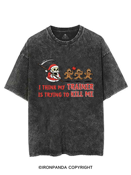 I THINK MY TRAINER IS TRYING TO KILL ME VINTAGE GYM SHIRT