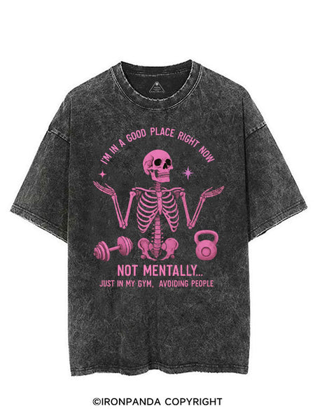 I'M IN A GOOD PLACE RIGHT NOW NOT MENTALLY JUST IN MY GYM AVOIDING PEOPLE VINTAGE GYM SHIRT