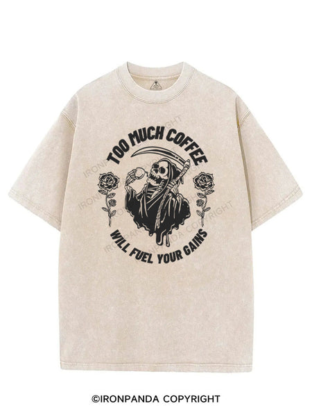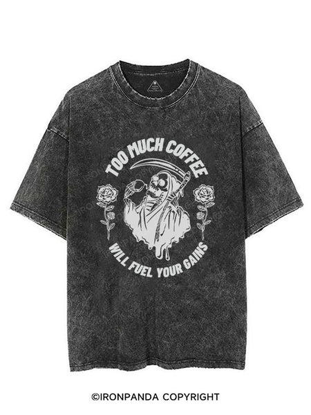 TOO MUCH COFFEE WILL FUEL YOUR GAINS VINTAGE GYM SHIRT
