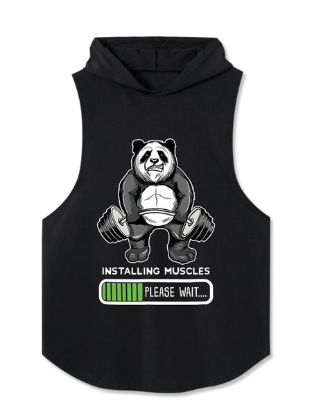 Panda Installing Muscles Hooded Tank