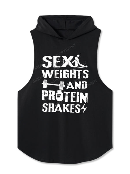 SEX WEIGHTS & PROTEIN SHAKES Washed Hooded Tank