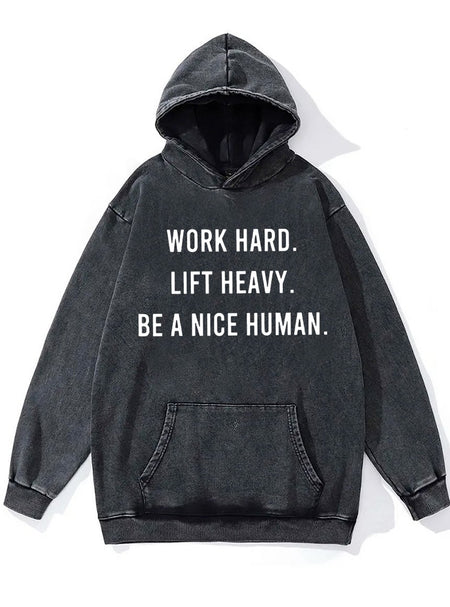 work hard lift heavy be a nice human Washed Gym Hoodie