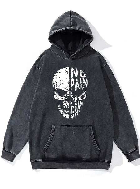 NO PAIN NO GAIN SKULL FACE Washed Gym Hoodie