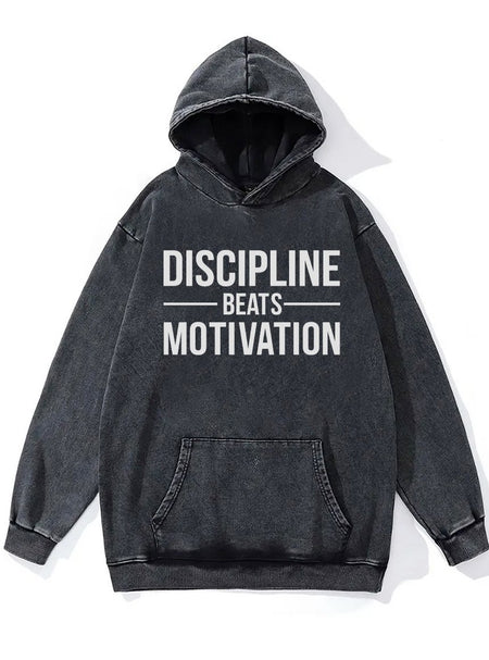 DISCIPLINE BEATS MOTIVATION Washed Gym Hoodie