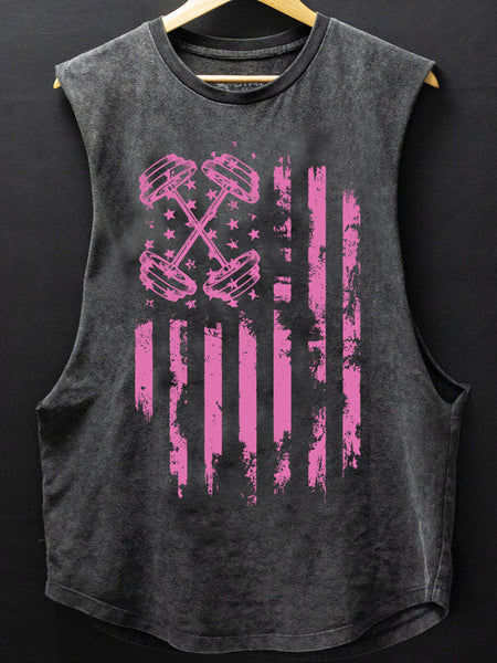 Barbell Flag Workout Scoop Bottom Cotton Tank
