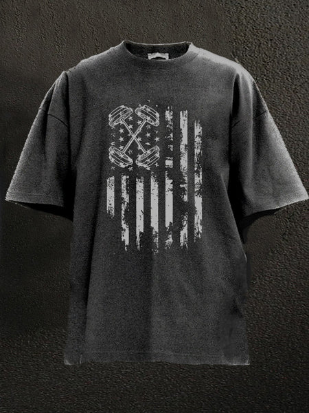 Freedom 2025 Barbell Flag Washed Gym Shirt