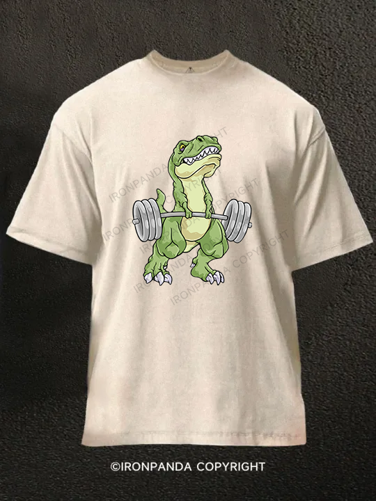 Weightlifting Dinosaur Washed Gym Shirt