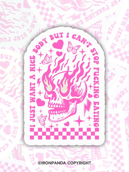 IronPanda I JUST WANT A NICE BODY BUT I CAN'T STOP FUCKING EATING Sticker