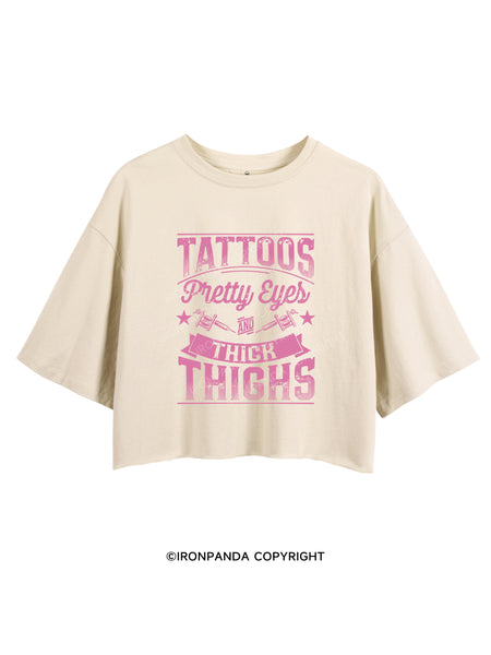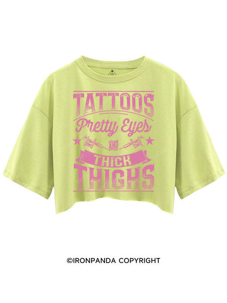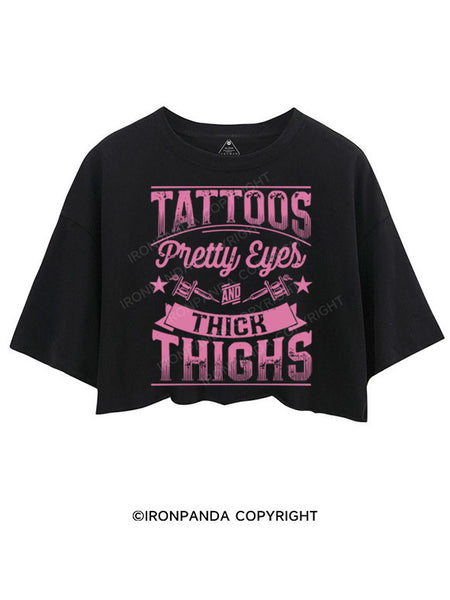TATTOOS PRETTY EYES AND THICK THIGHS CROP TOPS