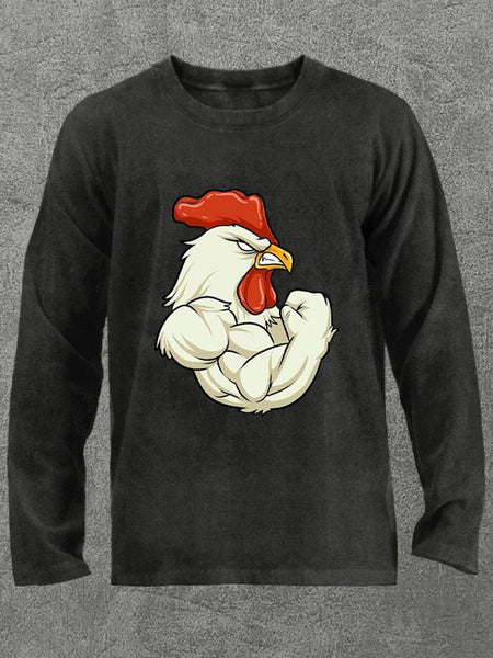 rooster at the gym Washed Gym Long Sleeve Shirt
