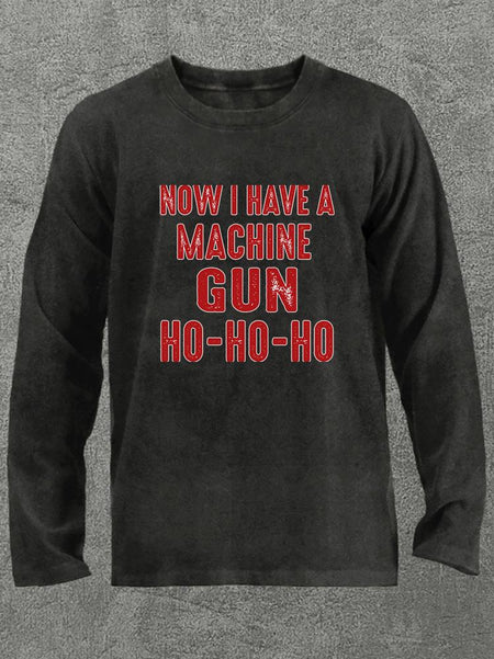NOW I HAVE A MACHINE GUN HO-HO-HO Washed Gym Long Sleeve Shirt