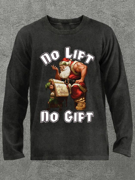 no lift no gift santa claus Washed Gym Long Sleeve Shirt