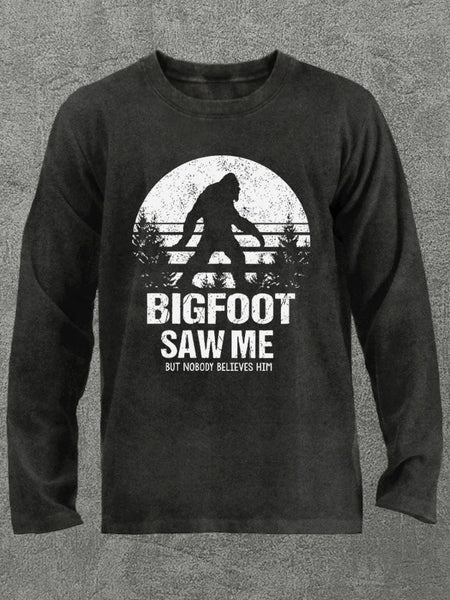 bigfoot saw me but nobody believes him Washed Gym Long Sleeve Shirt
