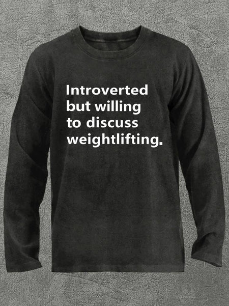 INTROVERTED BUT WILLING TO DISCUSS WEIGHTLIFTING Washed Gym Long Sleeve Shirt