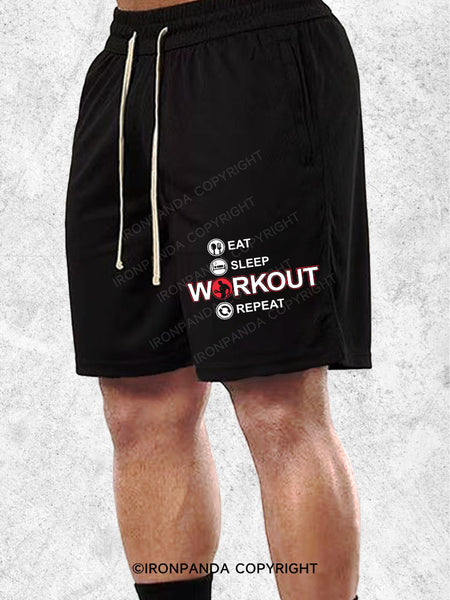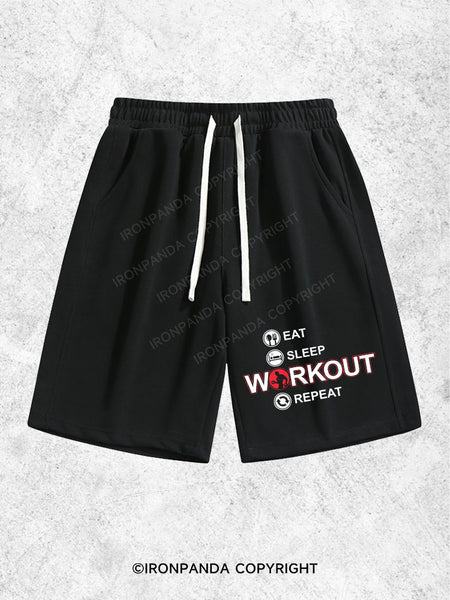 EAT SLEEP WORKOUT REPEAT Loose Cotton Gym Shorts