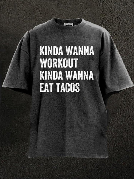 Kinda Wanna Workout Kinda Wanna Eat Tacos Washed Gym Shirt