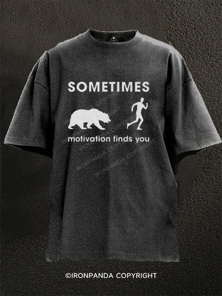 SOMETIMES MOTIVATION FINDS YOU BEAR Washed Gym Shirt