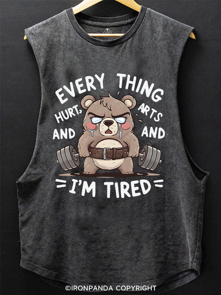 EVERY THING HURT AND I'M TIRED Bear lifting a dumbbell SCOOP BOTTOM COTTON TANK