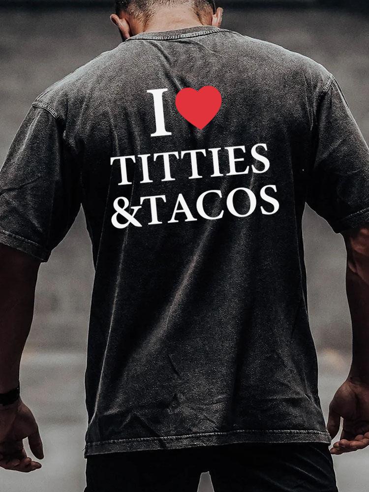 I LOVE TITTIES & TACOS back printed Washed Gym Shirt