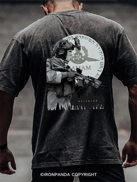 military operations back printed Washed Gym Shirt