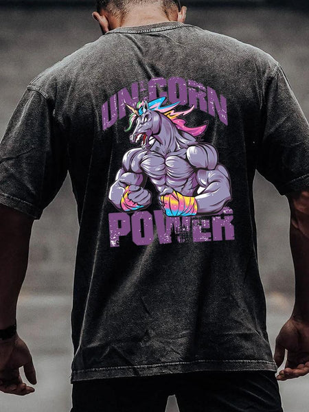 unicorn power back printed Washed Gym Shirt