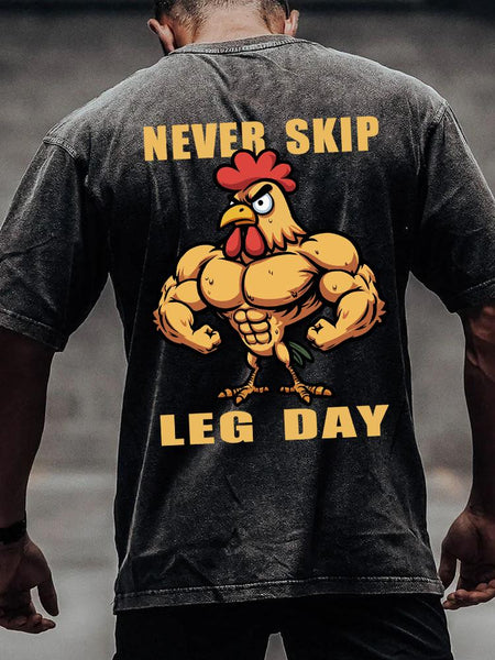 NEVER SKIP LEG DAY back printed Washed Gym Shirt
