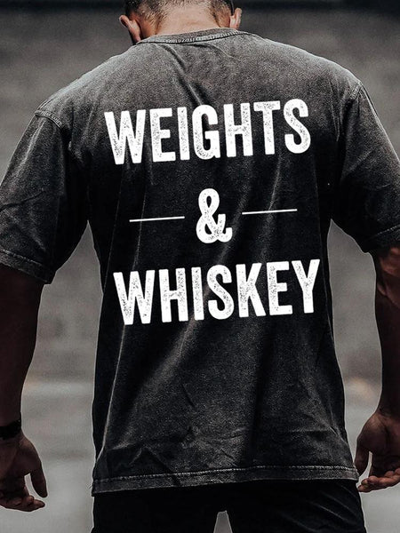 WEIGHTS AND WHISKEY back printed Washed Gym Shirt