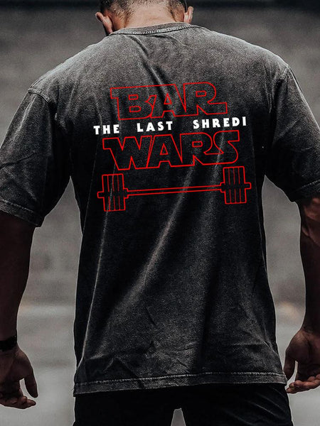 BAR LAST SHREDI WARS back printed Washed Gym Shirt