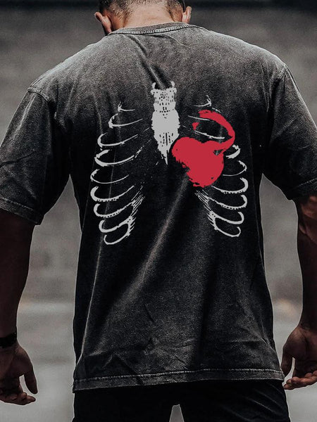 HEARTBEAT back printed Washed Gym Shirt