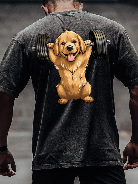 Weightlifting Dog back printed Washed Gym Shirt
