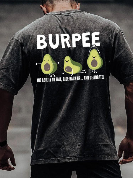 Burpee Avocado back printed Washed Gym Shirt