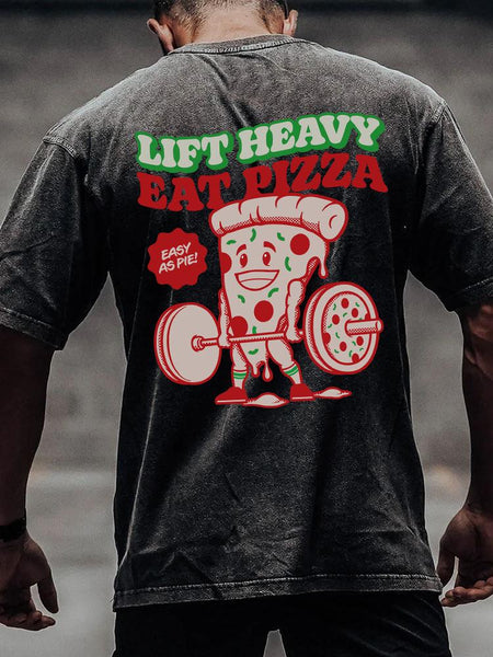 LIFT HEAVY EAT PIZZA back printed Washed Gym Shirt