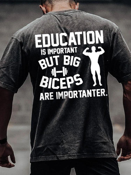 BICEPS ARE IMPORTANTER back printed Washed Gym Shirt