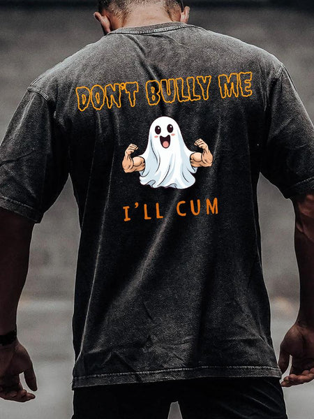 DON'T BULLY ME I'LL CUM back printed Washed Gym Shirt