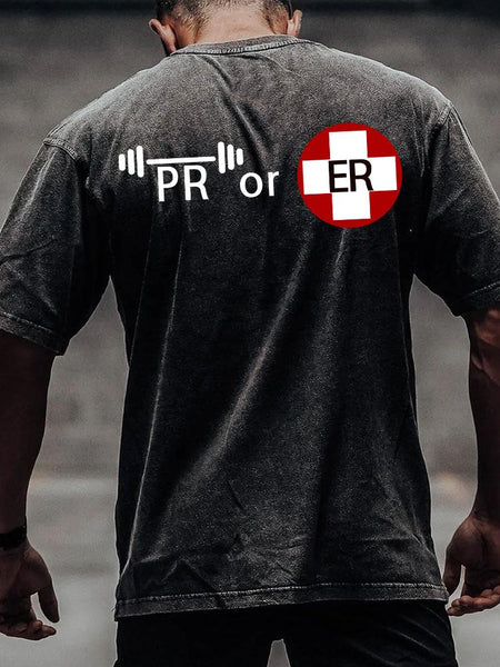 PR OR ER back printed Washed Gym Shirt