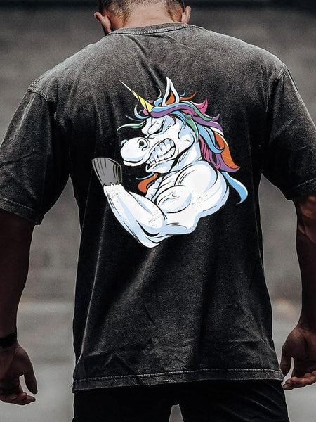 MUSCLE TAUREN back printed Washed Gym Shirt
